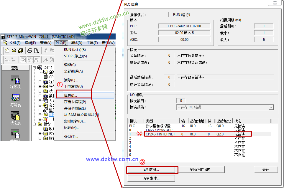 ①選擇“PLC菜單>信息”,彈出PLC信息頁面;