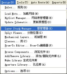 在PCB界面中點擊主菜單Design 再點擊Layer Stack Manager 如圖: