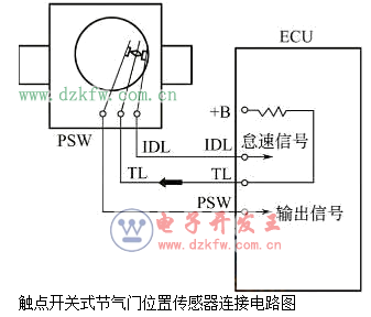 觸點開關式節氣門位置傳感器與ECU的連接電路。