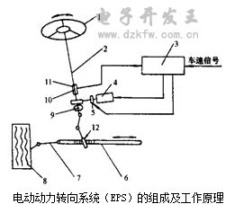 該系統通常由轉矩傳感器、車速傳感器、電動機、電磁離合器和減速機構、電子控制器組成。