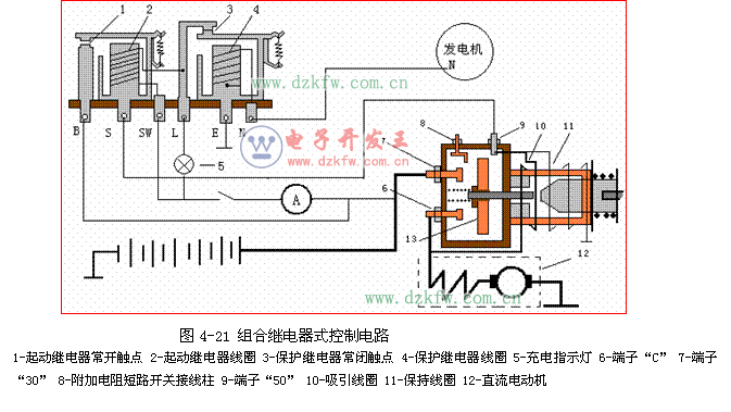 為了防止發動機起動以后起動電路再次接通,一些起動電路中安裝了帶有保護功能的組合式繼電器。