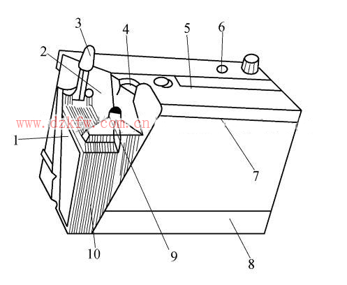 殼與 蓋粘 接處;8 — 外殼 ;9— 穿 壁式 單格電 池連接 條;