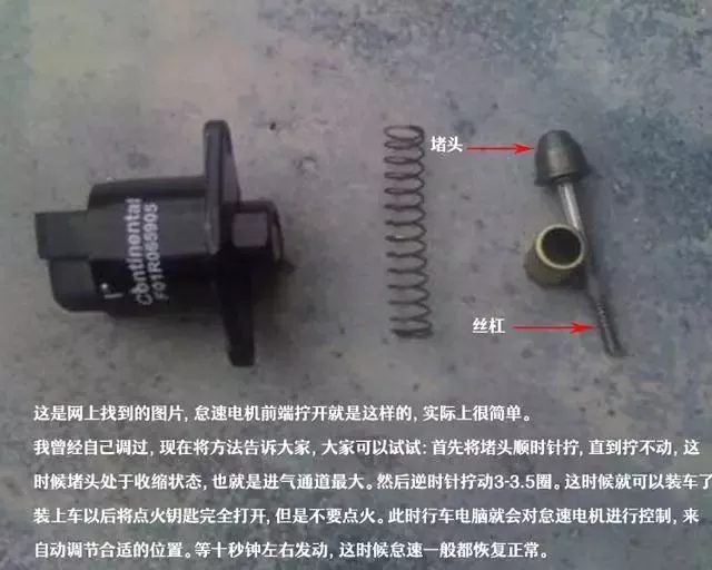 然后將怠速電機(jī)裝車,將鑰匙完全打開,也就是擰到ON的位置,這時(shí)候行車電腦會(huì)自動(dòng)對(duì)怠速電機(jī)進(jìn)行調(diào)解。大概十秒鐘就可以啟動(dòng)車輛了。如果怠速正常,則說明調(diào)節(jié)到位。如果怠速偏高,說明進(jìn)氣量大了,需要拆下來逆時(shí)針再轉(zhuǎn)動(dòng)0.5-1圈。然后再重復(fù)以上動(dòng)作。如果怠速太低或者無法啟動(dòng),那就說明進(jìn)氣不足,這時(shí)候就需要將堵頭順時(shí)針擰0.5-1圈。