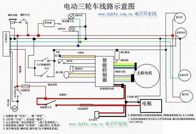 一例電動車整車電路的原理圖 電動車控制器的實物接線圖