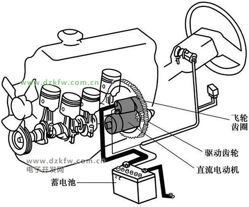 起動系統由起動機、起動繼電器、起動開關及起動保護裝置組成。其作用是帶動飛輪旋轉,使曲軸達到必要的起動轉速。