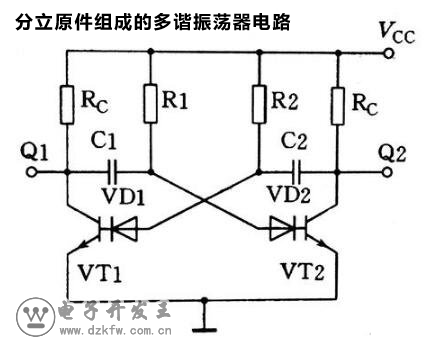 VT1、VT2輪流導通與截止,在Q1、Q2端輸出矩形波。