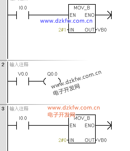 存儲器:使用VB進行存儲,如VB0(V0.7<–V0.0)