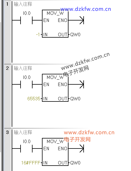 MOV_W為例,傳送整數(shù),當傳送-1時,out顯示的是65535,可實際out是-1,將out用于加法運算:out+1+0