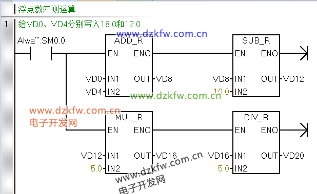 VW0寫入200,給VD12寫入3.14即可;