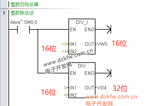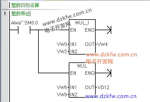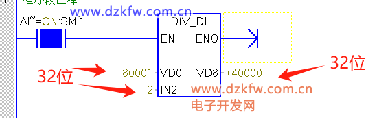 MUI_I:兩個16位整數(shù)相乘,得到16位整數(shù);MUI:兩個16位整數(shù)相乘,得到32位整數(shù)(由于改變了數(shù)據(jù)類型,所用的少,當范圍不夠時直接使用MUL_DI即可)