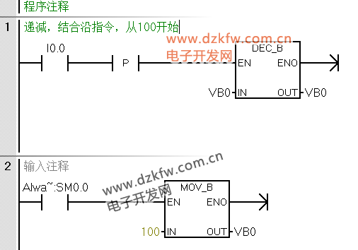 例:按I0.0對VB0遞減(結合沿指令)