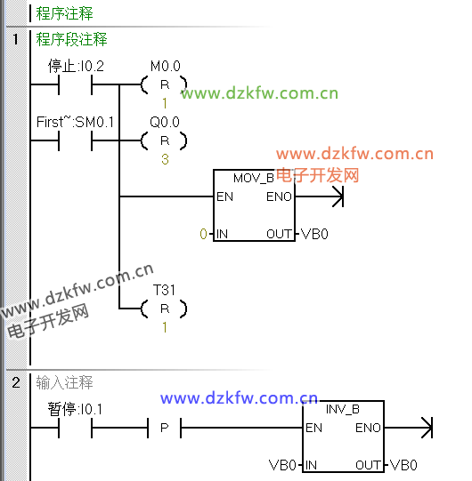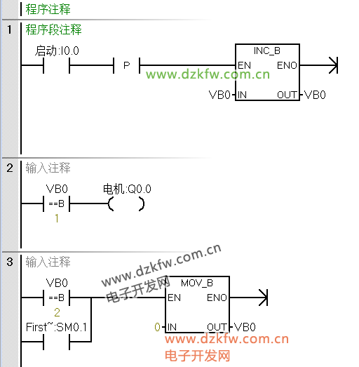 例:使用傳送指令實現(xiàn)Q0.0亮