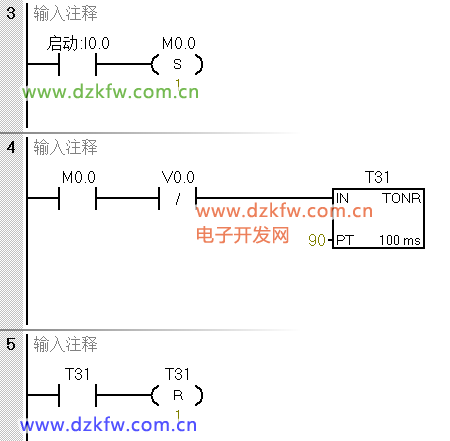例:帶啟動I0.0,暫停I0.1,總停I0.2的流水燈,三個燈每個亮3s,由此循環(huán);