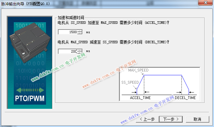 D、單擊“下一步”填寫(xiě)電機(jī)加速時(shí)間“1500”和電機(jī)減速時(shí)間 “200”。