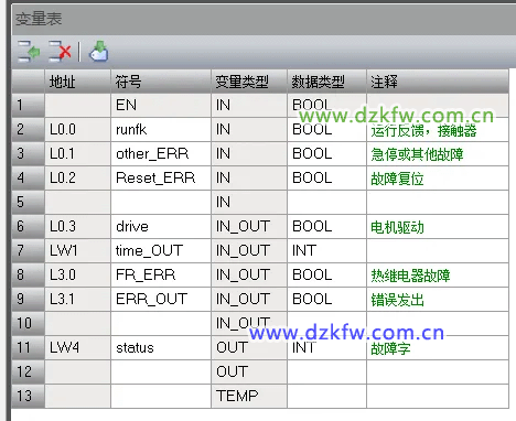 (1)啟動(dòng)或停止超時(shí)報(bào)故障(1.啟動(dòng)信號(hào)已給,但是接觸器沒吸合;2.停止信號(hào)已給,但是接觸器沒斷開)