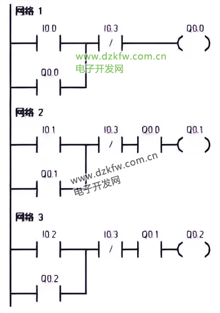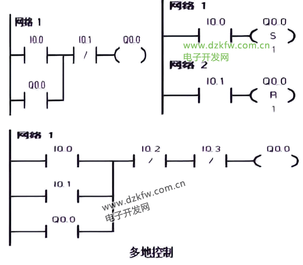 多輸出自鎖控制即多個負載自鎖輸出,有多種編程方法,可用置位、復位指令