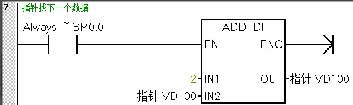 指針VD100加2存入VD104,則VD104指向VB2的起始地址。