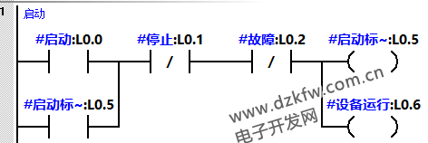 (1)程序段1啟停控制:V10.0接通后Q1.5接通,按下停止按鈕或者發生故障時設備停止。