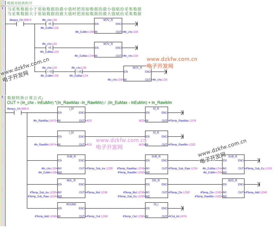 OUT = (In_chx - In_RawMin) * (In_EuMax - InEuMin) / (In_RawMax -In_RawMin) + In_EuMin