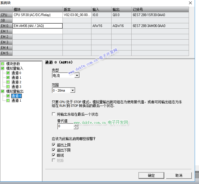 我們的變頻和儀表都是采用4~20MA電流信號(hào),因此我們修改系統(tǒng)塊,系統(tǒng)塊中可以看到模擬量輸入通道0的地址是AIW16,通道1的地址是AIW18
