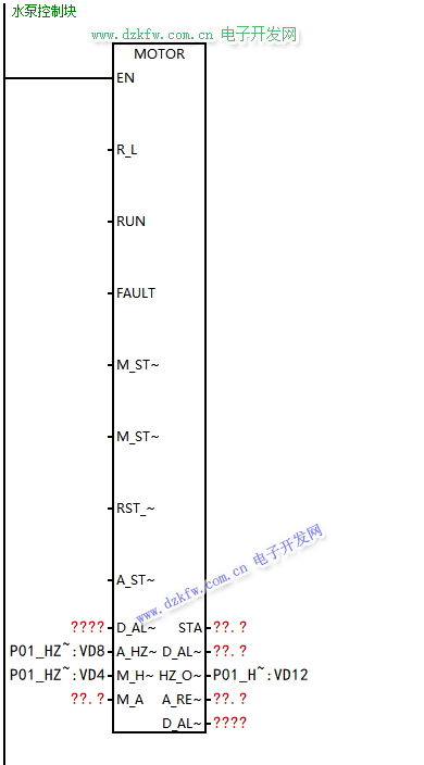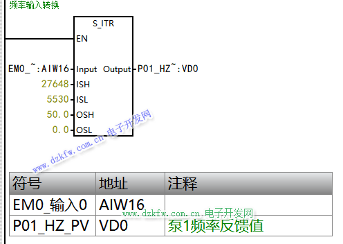3、將模擬量接入至水泵控制塊以下為水泵控制塊內(nèi)的子程序: