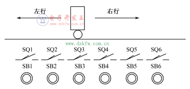 5,呼叫號(hào)小于位置號(hào)M7動(dòng)作右行觸點(diǎn)Y001輸出。