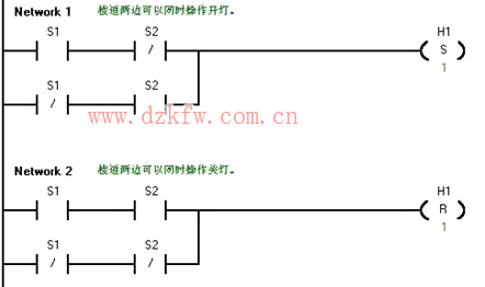 PLC梯形圖編程:PLC完成樓道內(nèi)對照明燈的雙向控制梯形圖