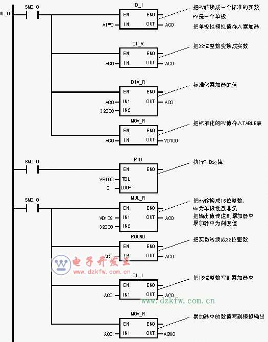 如圖7-42所示梯形圖模擬量模塊以EM235或EM231+EM232為例。