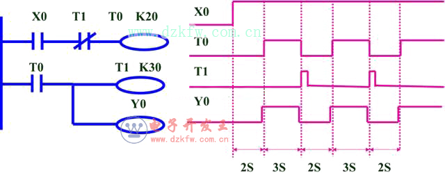 1、接通/斷開延時電路(定時器用作時間繼電器)