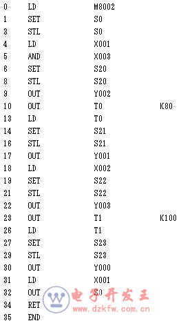 圖 人行道交通燈的步進(jìn)梯形圖和指令表