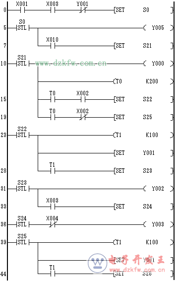 其步進(jìn)梯形圖和指令表分別見(jiàn)下圖( a )和( b )。