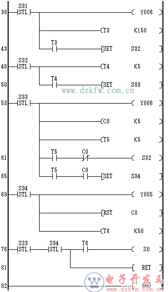 ( 4 )各 STL 觸點(diǎn)的驅(qū)動(dòng)電路一般放在一起,最后一個(gè) STL 電路結(jié)束時(shí),一定要使用步進(jìn)返回指令 RET 使其返回主母線。