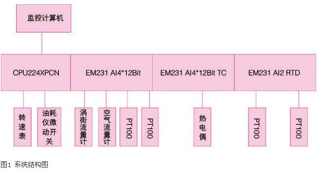 加熱器測試系統(tǒng)以西門子s7-200系列cpu224cn為主控制器,配合3個模擬量采集模塊,采集實驗室加熱設(shè)備各個傳感器和儀表數(shù)據(jù),plc以自由口通訊方式和油耗儀進(jìn)行通信,實現(xiàn)采集和控制功能。wincc以opc通訊方式和plc建立通信,為了實現(xiàn)更方便的數(shù)據(jù)歸檔、多個數(shù)據(jù)庫操作,上位監(jiān)控計算機(jī)采用visual basic進(jìn)行編程,實現(xiàn)了計算機(jī)與可編程控制器的控制。系統(tǒng)結(jié)構(gòu)圖如圖1所示。