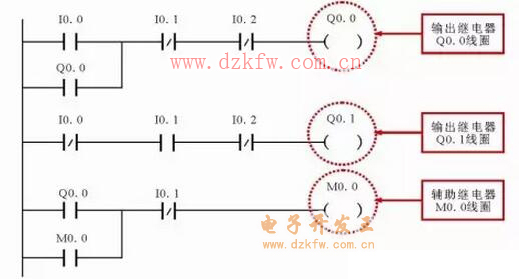 一般情況下,西門子PLC梯形圖編程時,習(xí)慣性的只畫出左母線,省略右側(cè)母線,但其所表達梯形圖程序中的能流仍是由左母線經(jīng)程序中觸點I0.1、I0.2、線圈Q0.0等至右母線中的過程,如圖2所示。