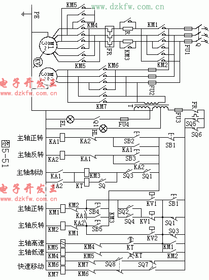 圖1 臥式鏜床的繼電器控制電路