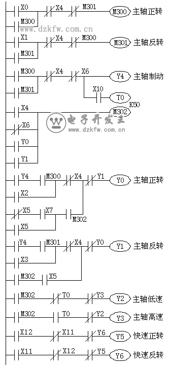 圖3 臥式鏜床PLC控制系統(tǒng)的梯形圖