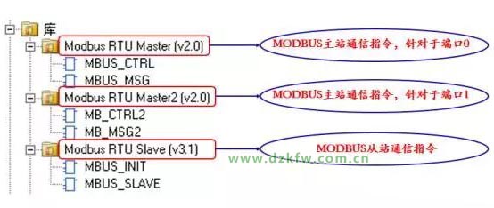 在S7-200SMART系列PLC中的庫指令中集成了MODBUS RTU通信的庫指令,庫指令中包含了S7-200SMART系列PLC作為主站功能的庫指令及S7-200SMART系列PLC作為從站功能的庫指令(如下圖所示)