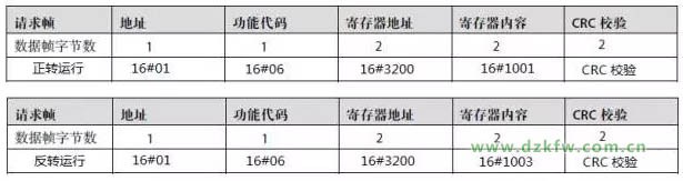 RW:讀寫操作選擇,0表示讀,1表示寫,若控制變頻器運行,使用寫的功能,若需要讀取變頻器的電流等需要用讀的命令。