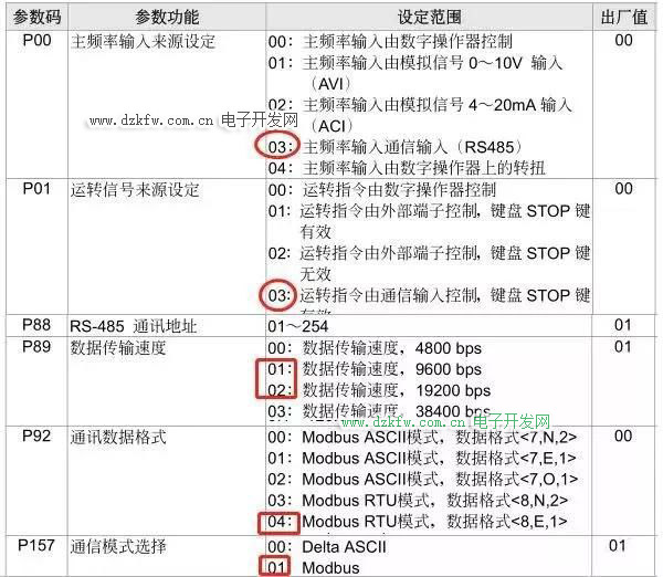 五、變頻器通信參數的設置