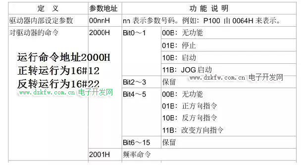 運行命令地址2000H 頻率命令地址2001H
