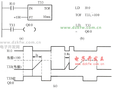 簡介斷開延時定時器指令用于斷開后的單一間隔定時,該指令的梯形圖和語句表如圖 3 - 44 所示, TOF 為定時器標(biāo)識符, Tn 為定時器編號, IN 為啟動電平輸入端, PT 為時間設(shè)定值輸入端。當(dāng)