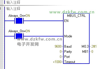 根據(jù)上述引腳說明,MBUS_MSG程序?yàn)椋?BR>