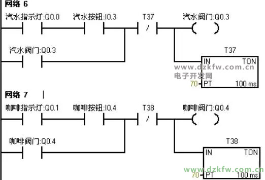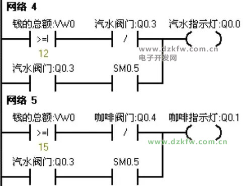 1.此售貨機可投入1 元、3 元或5 元硬幣。2.當投入的硬總值超過12 元時,汽水指示燈亮;當投入的硬幣總值超過15 元時,汽水及咖啡按鈕指示燈都亮。3.當汽水燈亮時,按汽水按鈕,則汽水排出7s 后自動停止,這段時間內,汽水指示燈閃動。4.當咖啡燈亮時,按咖啡按鈕,則咖啡排出7s 后自動停止,這段時間內,咖啡指示燈閃動。5.若汽水或咖啡按出后,還有一部分余額,則找錢指示燈亮,按下找錢按鈕,自動退出多余的錢給另一個數據寄存器VW2,,找錢指示燈滅掉,并將找錢的余額清掉.