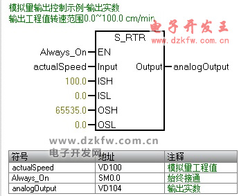 西門子plc S_RTR指令模擬量輸出控制示例