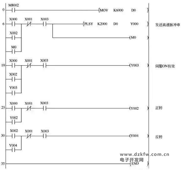 此外,有的初學者編寫程序時輸入的脈沖數較少,而且齒輪比P3/P4又很小,發現系統運行后,伺服電動機并未轉動,從而不知所措,其實伺服電動機已經旋轉,只不過肉眼沒有發現其轉動,只要把輸入的脈沖數增加到足夠大,將齒輪比調大一些,就能發現伺服電動機旋轉。