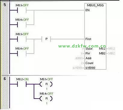 從站自VB31開始為讀取主站VB11開始的8個字節主站系統時鐘數據,指定VB31的起始地址是由Addr地址40011定義的,從站循環指令VD11運行結果,將由Mbus_init的Holdstart定義的起始地址發送和接收。