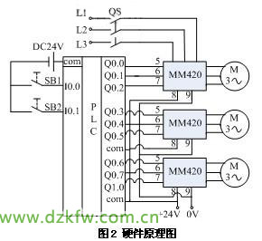 改造后的系統采用S7-200 PLC、西門子MM420變頻器,改造方案硬件原理圖如圖2所示。