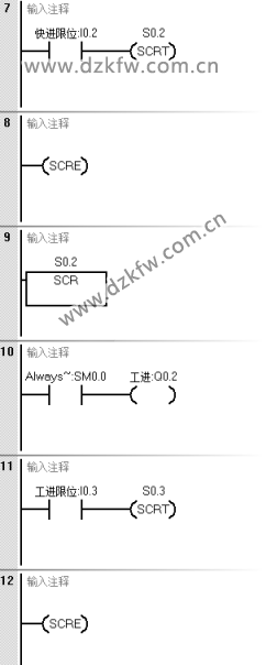 寫程序的時候注意在SCR段中,用轉移條件對應的觸點驅動SCRT指令即可實現轉移到下一個狀態步。