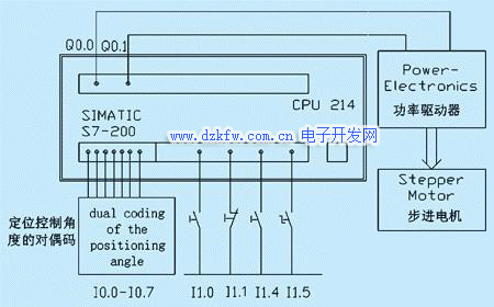PLC輸出的集成脈沖可通過步進電機進行定位控制。關于定位控制,調節和控制操作之間存在一些區別。步進電機不需要連續的位置控制,而在控制操作中得到應用。在以下的程序例子中,借助于CPU214所產生的集成脈沖輸出,通過步進電機來實現相對的位置控制。雖然這種類型的定位控制不需要參考點,本例還是粗略地描述了確定參考點的簡單步驟。因為實際上它總是相對一根軸確定一個固定的參考點,因此,用戶借助于一個輸入字節的對偶碼(Dual coding)給CPU指定定位角度。用戶程序根據該碼計算出所需的定位步數,再由CPU輸出相關個數的控制脈沖。