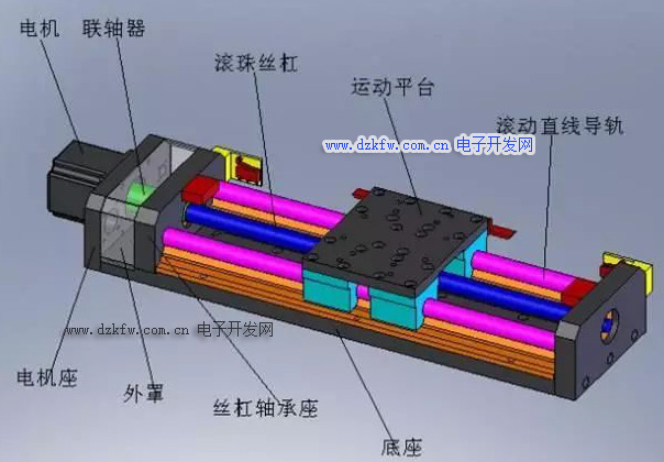 2、一維運動平臺的行程兩端各有一行程開關,分別定義為正向限位和負向限位;